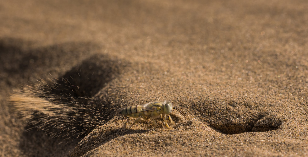 On the last day, I was lucky enough to see 2 rare sightings – one was that of a desert wasp digging hole for itself, probably to bury a victim; and other was a dung beetle rolling dung-ball over the sand dunes and burying it in the sand.